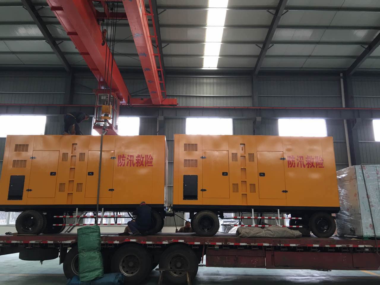 今日,安徽某地的客户订购了两台移动式柴油发电机组,机组具备牵引杆、刹车装置、支撑腿、日用油箱等,严格按ISO9001国际质量管理体系管理,产品质量标准化。下图为出场前拍摄的图片: